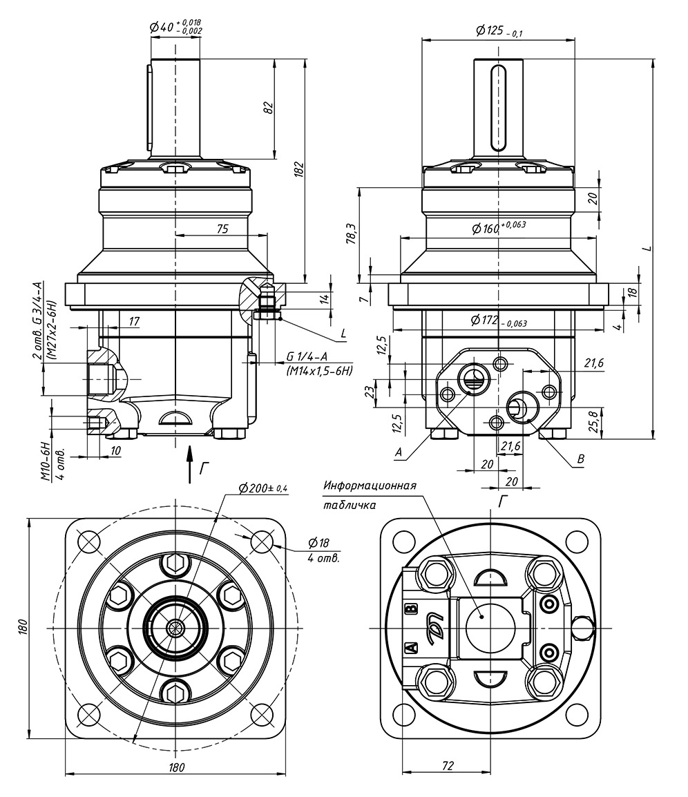 Габаритные и присоединительные размеры гидромоторов серии Д12